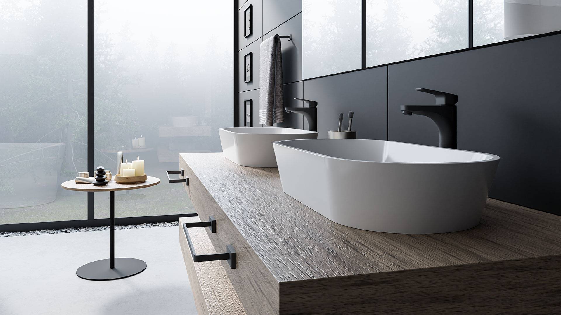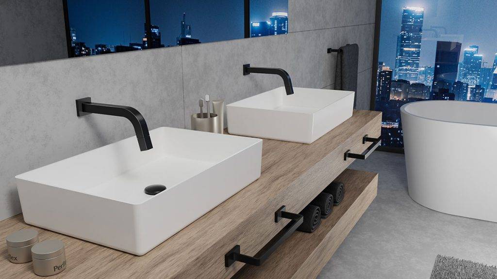 Com traços leves as peças da linha DOM transformam o lavatório em um lugar elegante e confortável.
