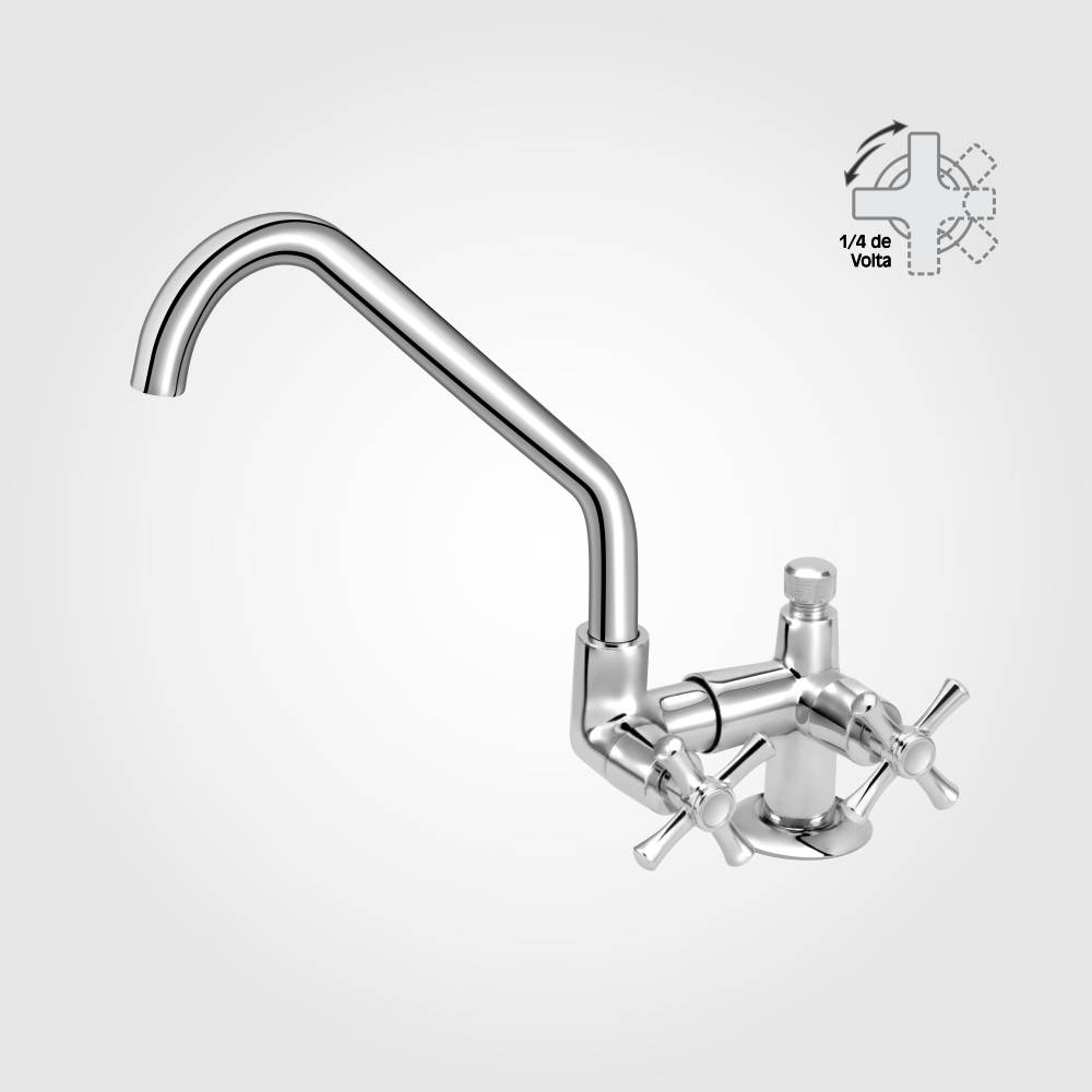 - Torneira de cozinha metálica de parede econômica, além de ser prática, resistente e funcional.